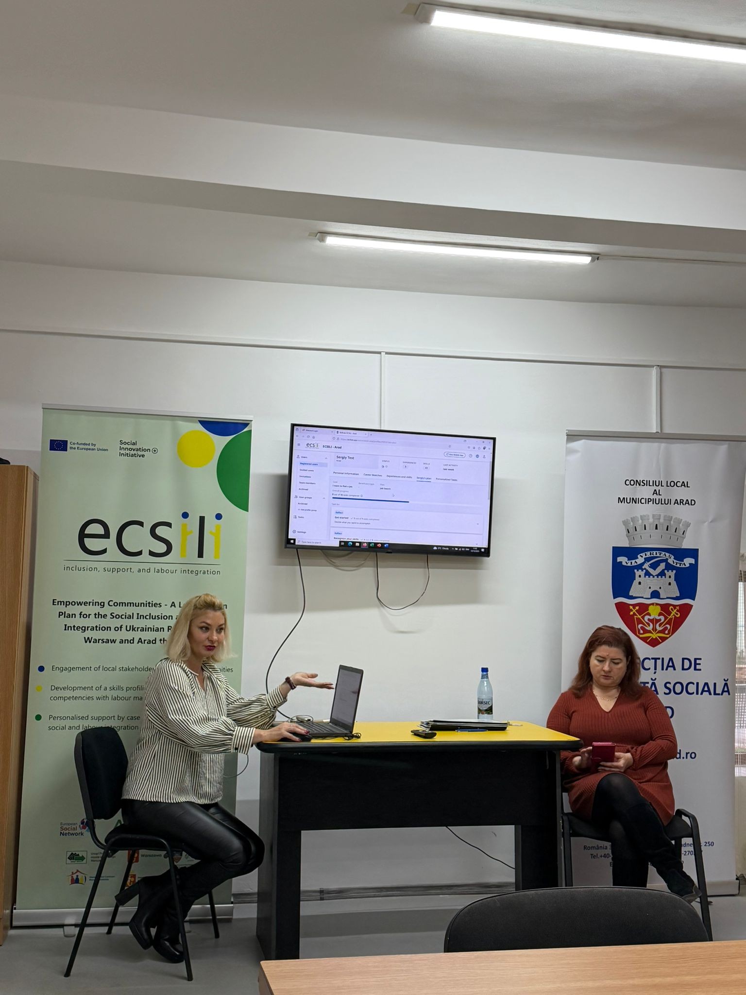 Participanții (reprezentanți ai DAS Arad, AJOFM Arad, UUR Filiala Arad și Asociația Centrul de Vis) au fost instruiți detaliat în utilizarea aplicației SkillLab.